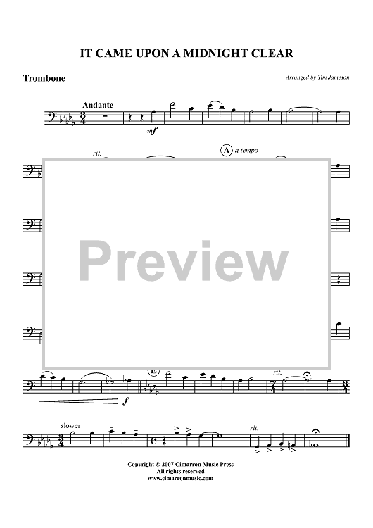 "It Came Upon a Midnight Clear - Trombone" Sheet Music by Traditional