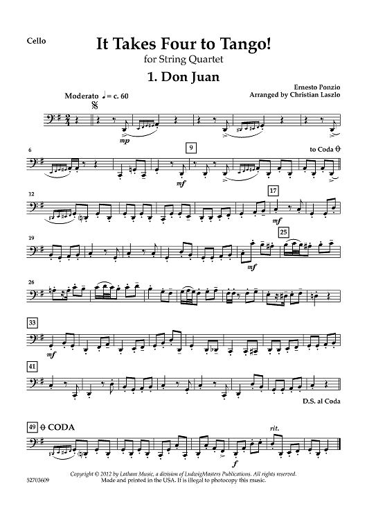Digital Sheet Music for It Takes Four to Tango! - Cello by Various, Christian Laszlo scored for String Quartet; id:464188