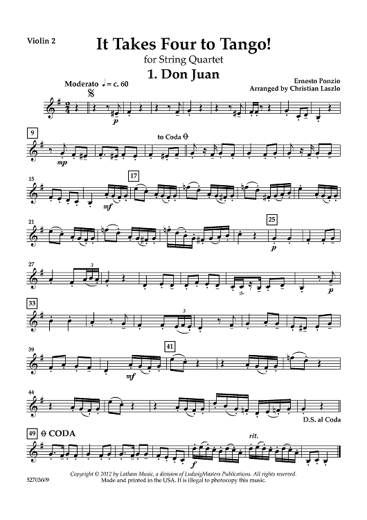 Digital Sheet Music for It Takes Four to Tango! - Violin 2 by Various, Christian Laszlo scored for String Quartet; id:464186