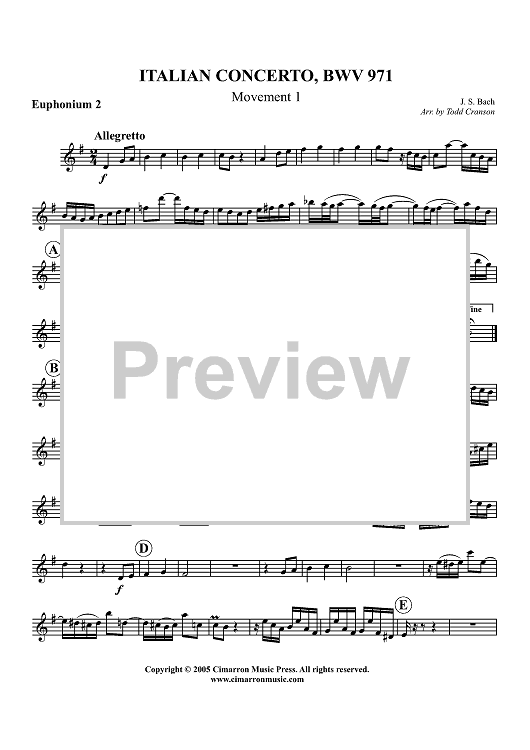 "Italian Concerto, BWV 971, Mvt. 1 - Euphonium 2 BC/TC" Sheet Music by Johann Sebastian Bach