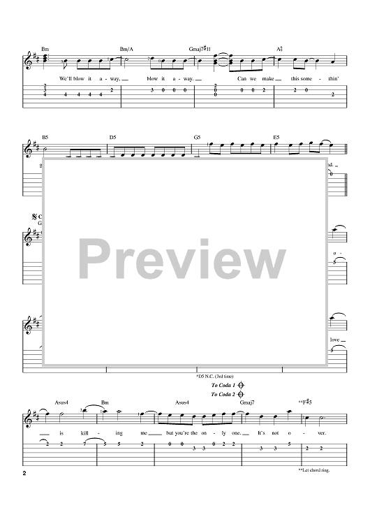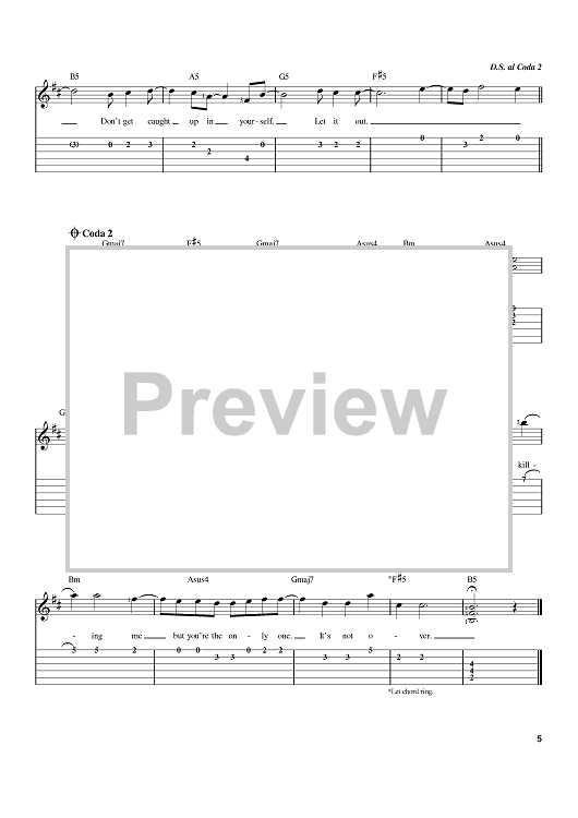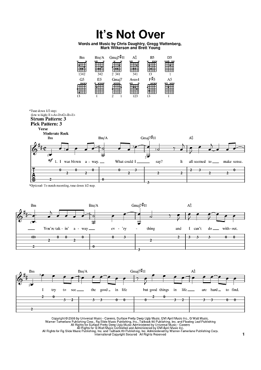 Digital Sheet Music for It's Not Over by Mark Wilkerson, Gregg Wattenberg, Chris Daughtry, Daughtry, Brett Young scored for Easy Guitar Tab; id:401513