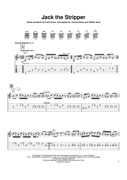Digital Sheet Music for Jack The Stripper by Black Sabbath, Geezer Butler, Tony Iommi, Ozzy Osbourne scored for Easy Guitar Tab; id:373194