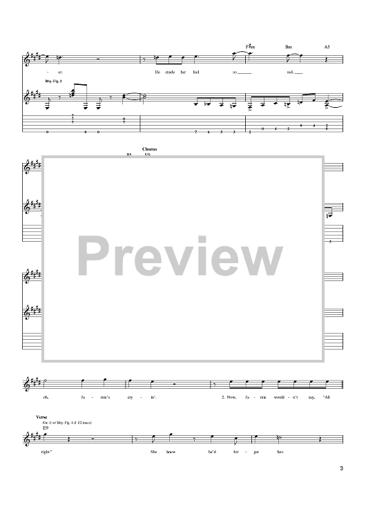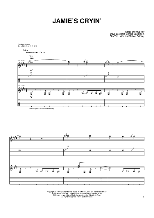 Digital Sheet Music for Jamie's Cryin' by Eddie Van Halen, David Lee Roth, Michael Anthony, Alex Van Halen, Van Halen scored for Easy Guitar Tab; id:396582