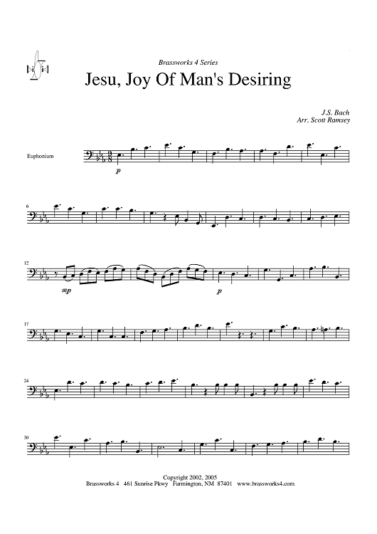 Digital Sheet Music for Jesu, Joy of Man's Desiring - Euphonium by Scott A. Ramsey, Johann Sebastian Bach scored for Brass Quartet; id:316692