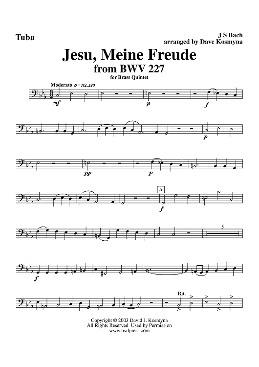 "Jesu, Meine Freude - Tuba" Sheet Music by Johann Sebastian Bach