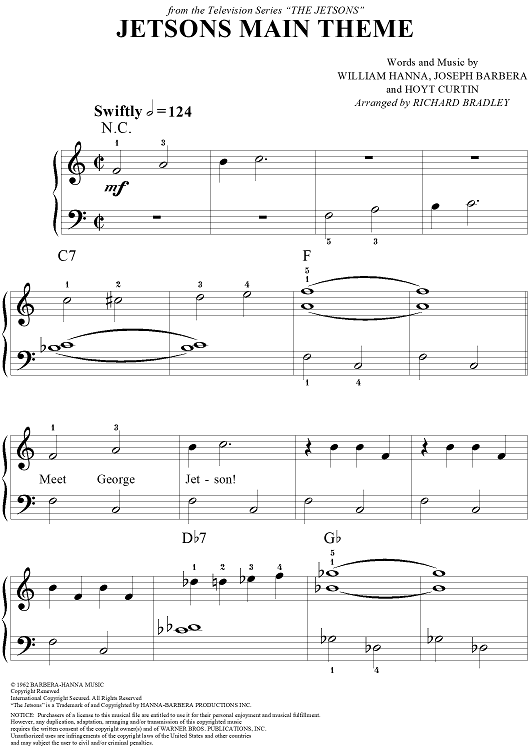 Digital Sheet Music for Jetsons Main Theme by Joseph Barbera, Hoyt Curtin, Richard Bradley, William Hanna scored for Easy Piano/Vocal; id:285574