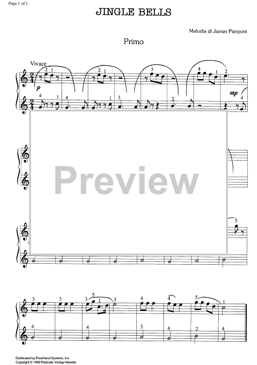 Digital Sheet Music for Jingle Bells by Enrico Battistoni, James Pierpont scored for 1 Piano, 4 Hands; id:352467