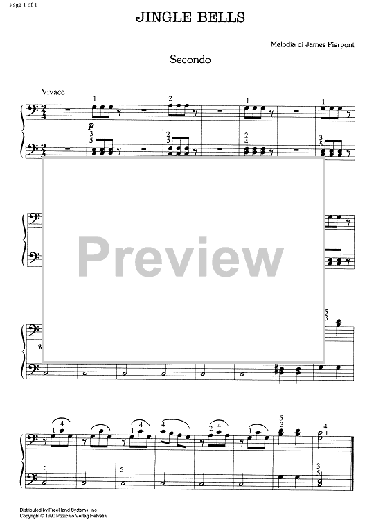 Digital Sheet Music for Jingle Bells by Enrico Battistoni, James Pierpont scored for 1 Piano, 4 Hands; id:352468