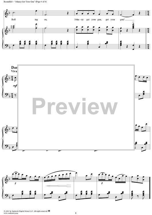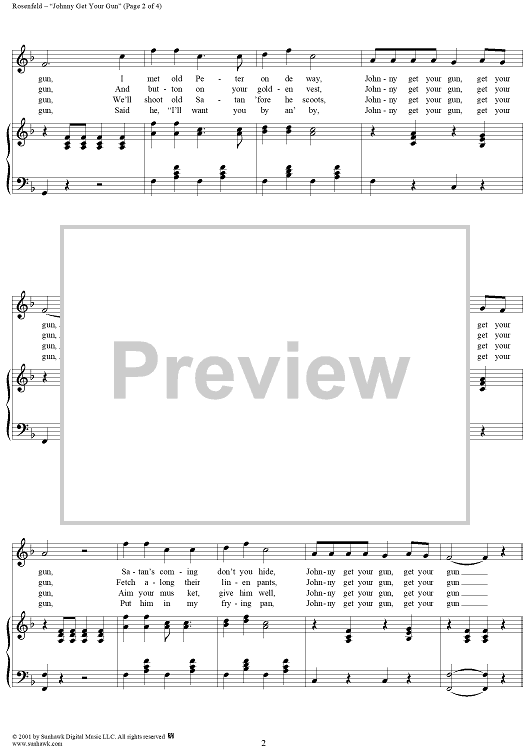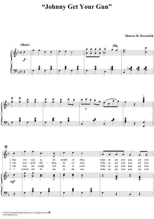 Digital Sheet Music for Johnny Get Your Gun by Monroe H. Rosenfeld scored for Piano/Vocal; id:265426