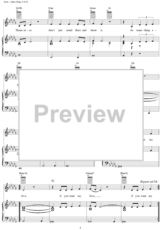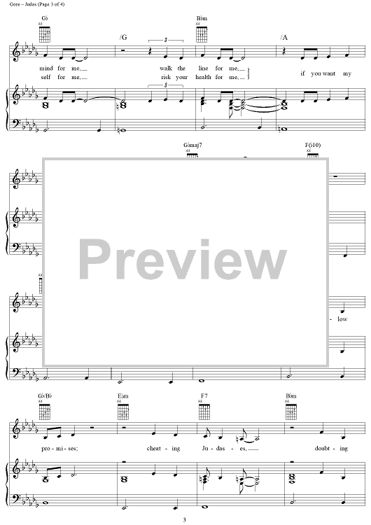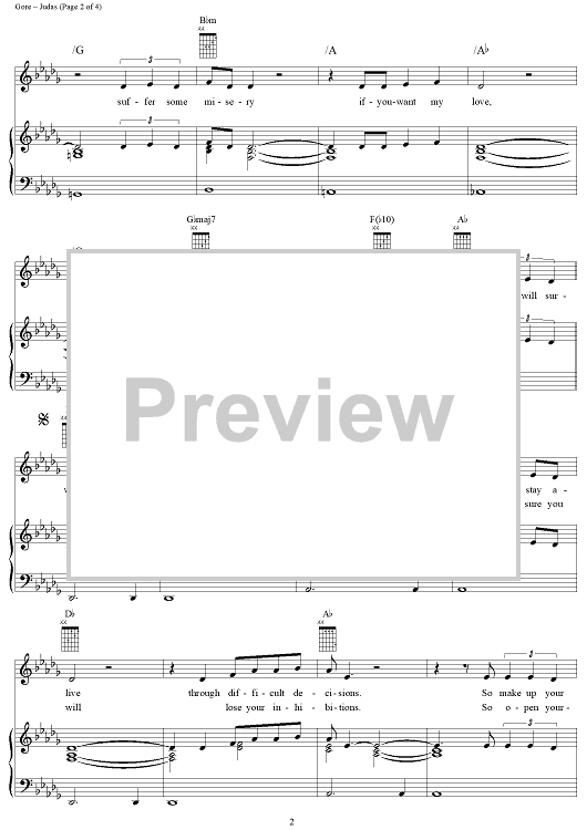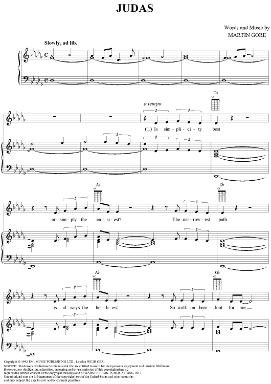 Digital Sheet Music for Judas by Martin Gore, Depeche Mode scored for Piano/Vocal/Chords; id:267974