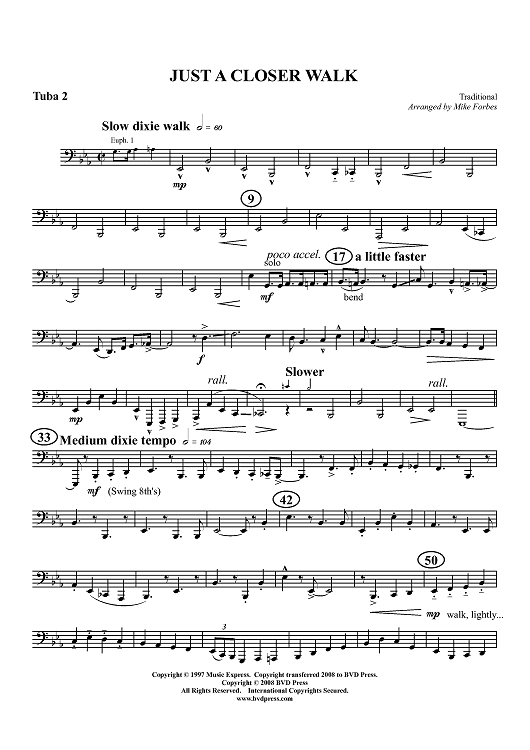 Digital Sheet Music for Just a Closer Walk - Tuba 2 by Traditional, Mike Forbes scored for Tuba Quartet; id:412015