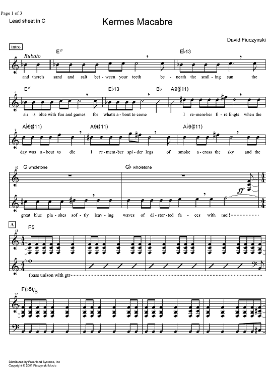 Digital Sheet Music for Kermes Macabre by David Fiuczynski scored for Lead Sheet; id:326662