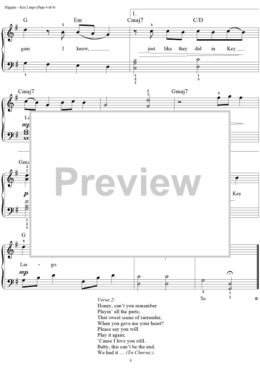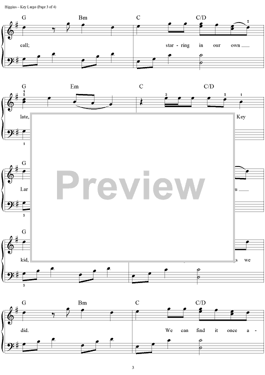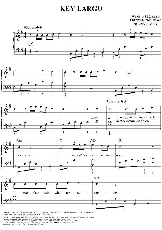 Digital Sheet Music for Key Largo by Sonny Limbo, Bertie Higgins scored for Easy Piano/Vocal; id:266818
