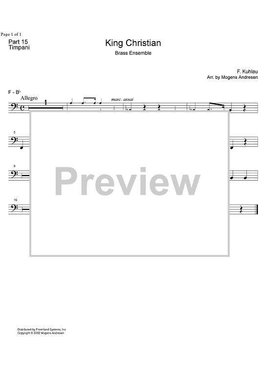 Digital Sheet Music for King Christian - Timpani by Mogens Andresen, Friedrich Kuhlau scored for Brass Ensemble; id:333428