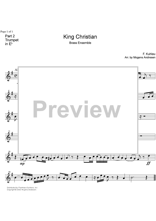 Digital Sheet Music for King Christian - Trumpet in E-flat by Mogens Andresen, Friedrich Kuhlau scored for Brass Ensemble; id:333416