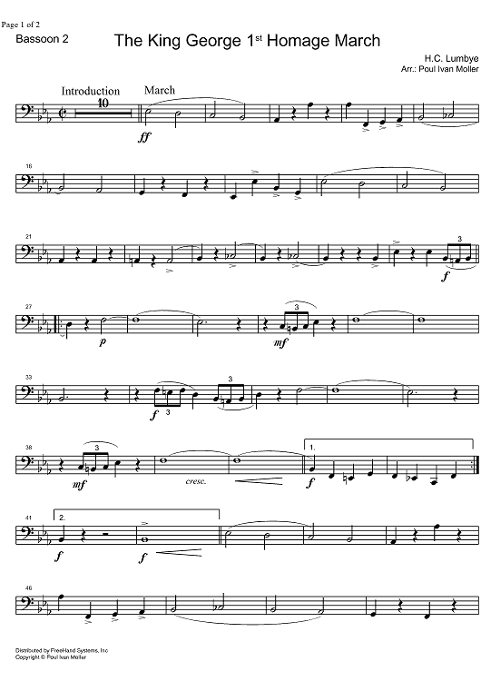 Digital Sheet Music for King George 1st Homage March - Bassoon 2 by Hans Lumbye, Poul Ivan Moller scored for Concert Band; id:328509