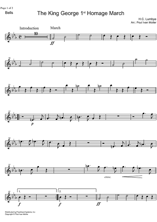 Digital Sheet Music for King George 1st Homage March - Bells by Hans Lumbye, Poul Ivan Moller scored for Concert Band; id:328523