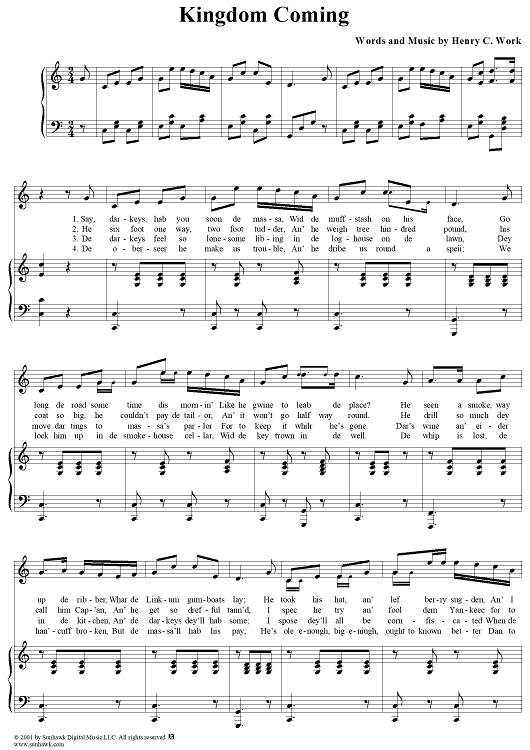 Digital Sheet Music for Kingdom Coming by Henry C. Work scored for Piano/Vocal; id:250086