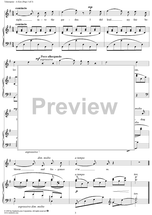 Digital Sheet Music for Kiss, A - Op. 21, No. 4 by Nicholas Tcherepnin scored for Voice/Piano; id:269604