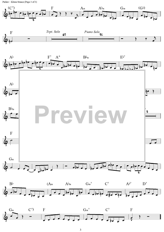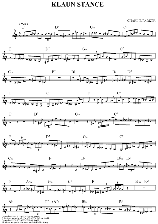 Digital Sheet Music for Klaun Stance by Charlie Parker scored for Lead Sheet; id:443000