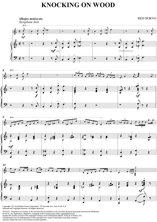Digital Sheet Music for Knocking on Wood - Piano Score by Red Norvo scored for Xylophone/Piano; id:308535