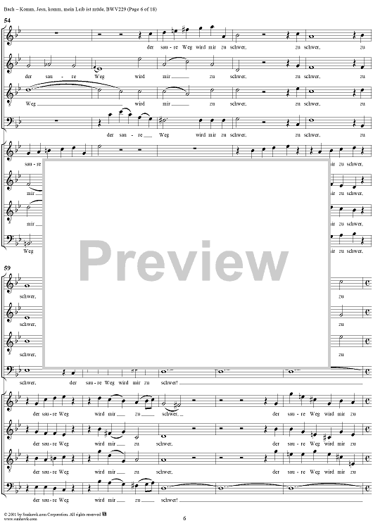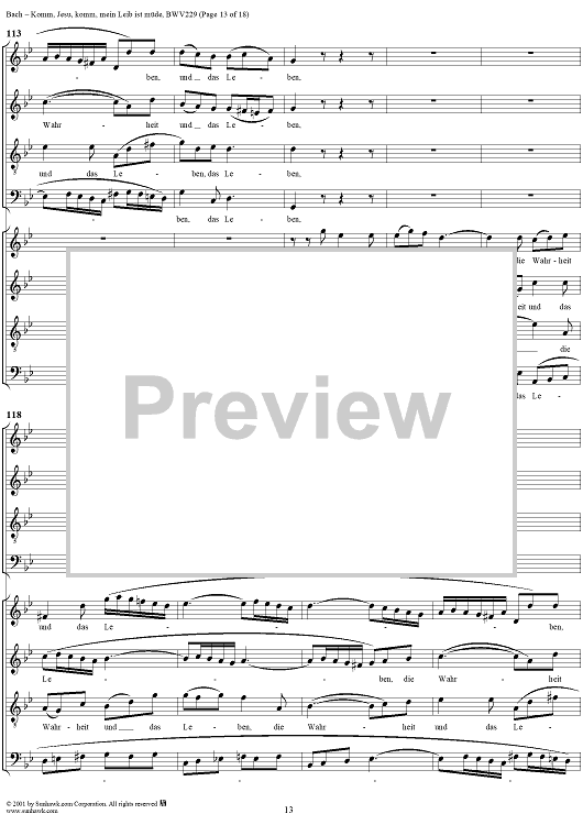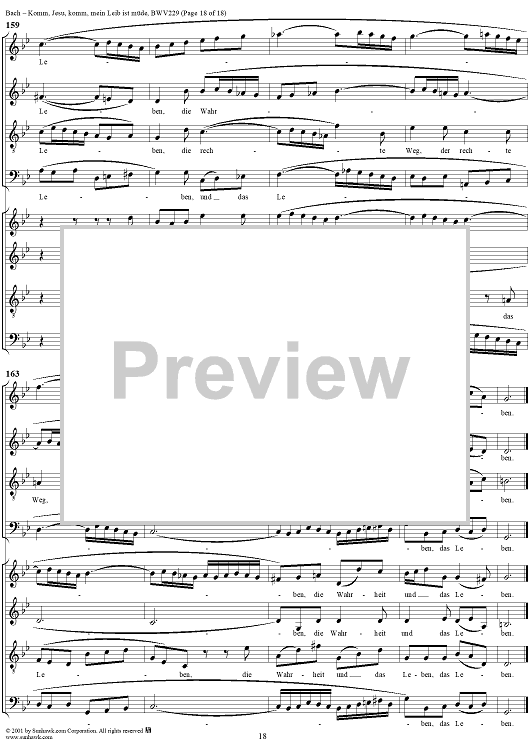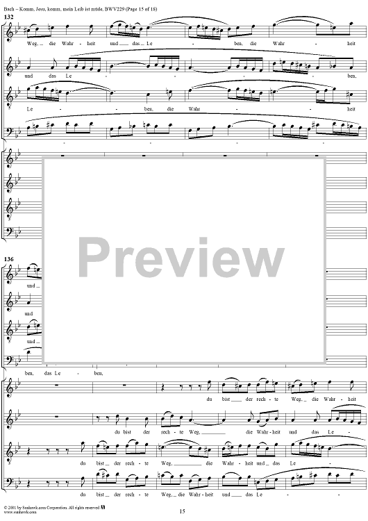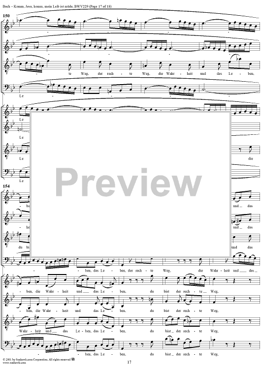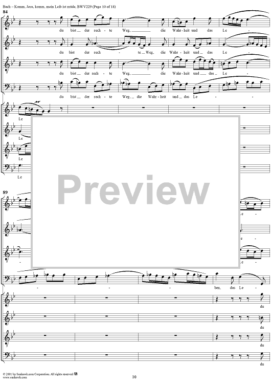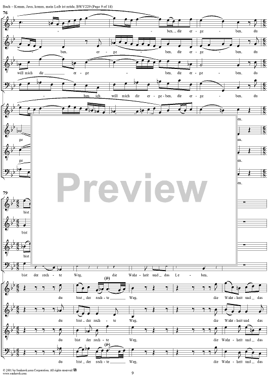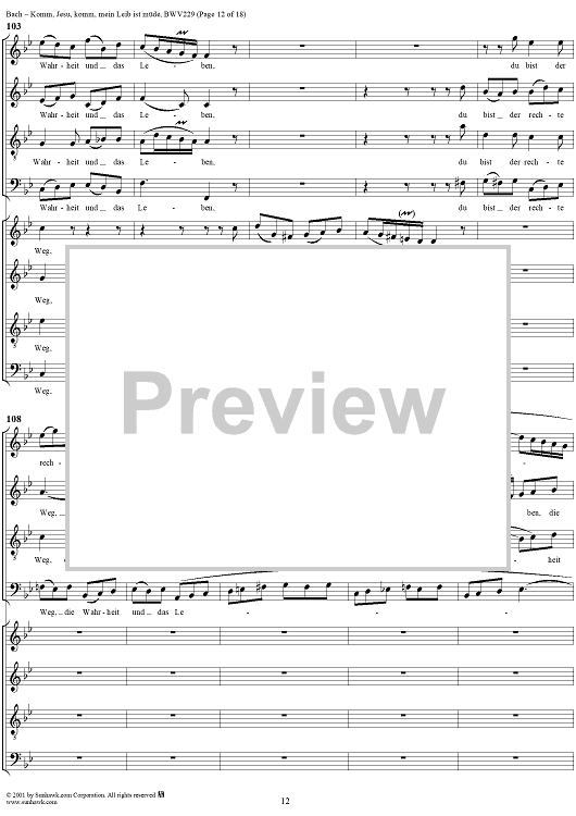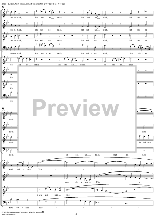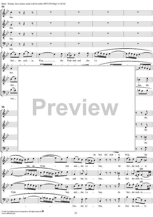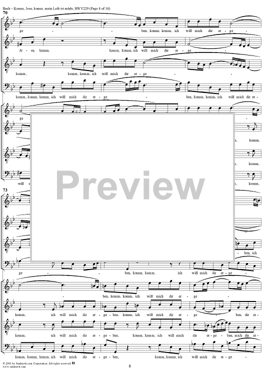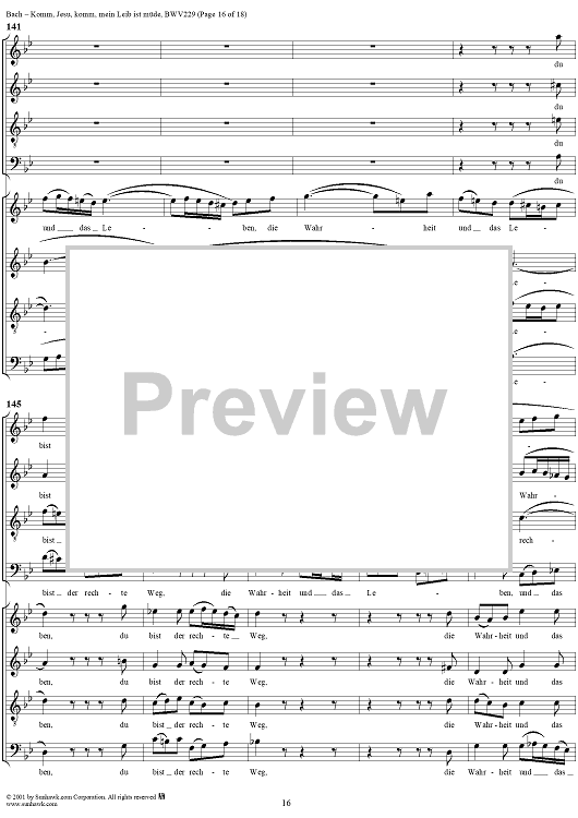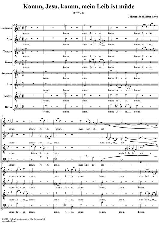 Digital Sheet Music for "Komm, Jesu, komm, mein Leib ist müde" (BWV229) by Johann Sebastian Bach scored for Four-part Mixed Chorus; id:256202