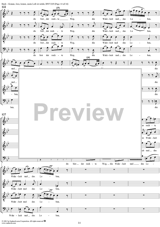 ""Komm, Jesu, komm, mein Leib ist müde" (BWV229)" Sheet Music by Johann Sebastian Bach