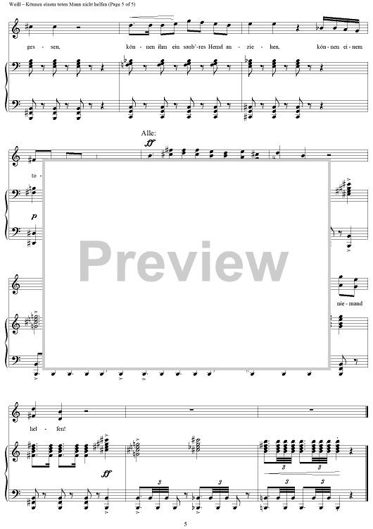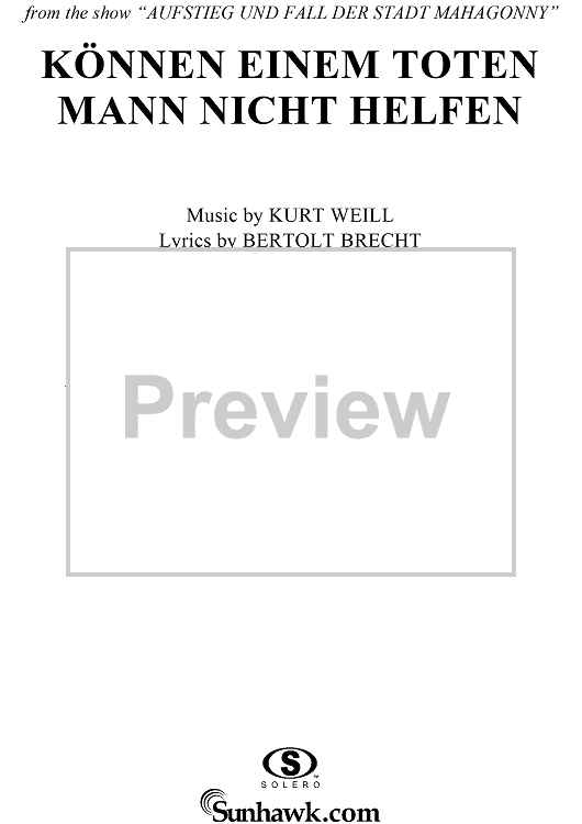 Digital Sheet Music for Konnen einen toten Mann nicht helfen by Bertold Brecht, Kurt Weill scored for Piano/Vocal; id:263503