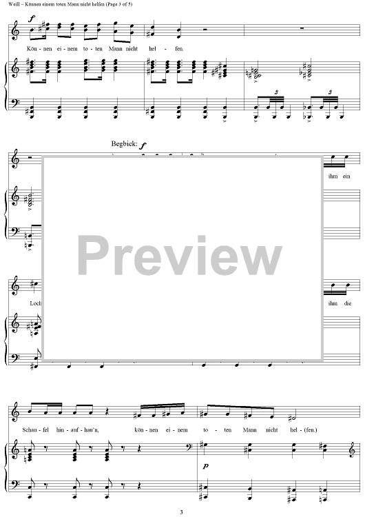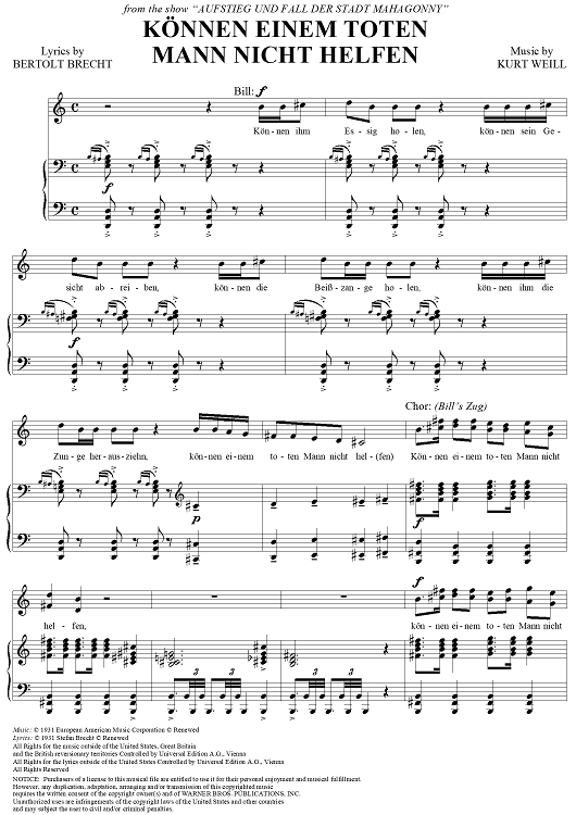 "Konnen einen toten Mann nicht helfen" Sheet Music by Kurt Weill