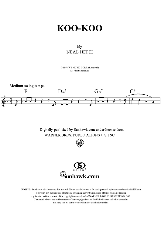 Digital Sheet Music for Koo-Koo by Neal Hefti scored for Lead Sheet; id:266650