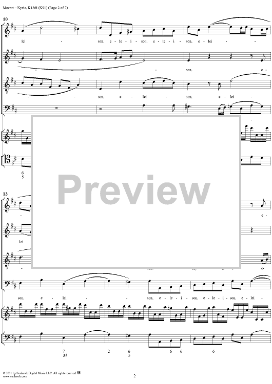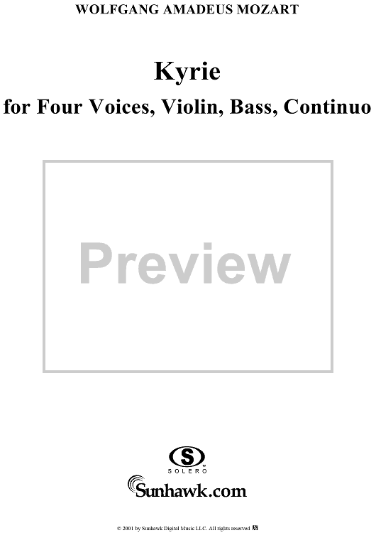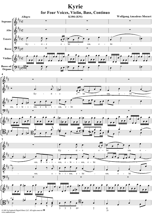 Digital Sheet Music for Kyrie for Four Voices, Violin, Bass, Continuo, K. 91 (K186i) - Full Score by Wolfgang Amadeus Mozart scored for Four-part Mixed Chorus; id:242013