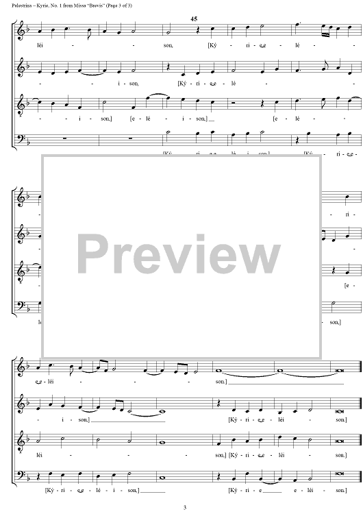 Digital Sheet Music for Kyrie - No. 1 from Missa Brevis by Giovanni Pierluigi da Palestrina scored for Four-part Mixed Chorus; id:254101