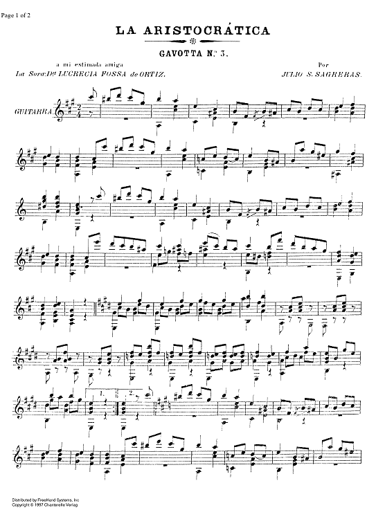 Digital Sheet Music for La Aristocrática by Julio Sagreras scored for Guitar; id:327147