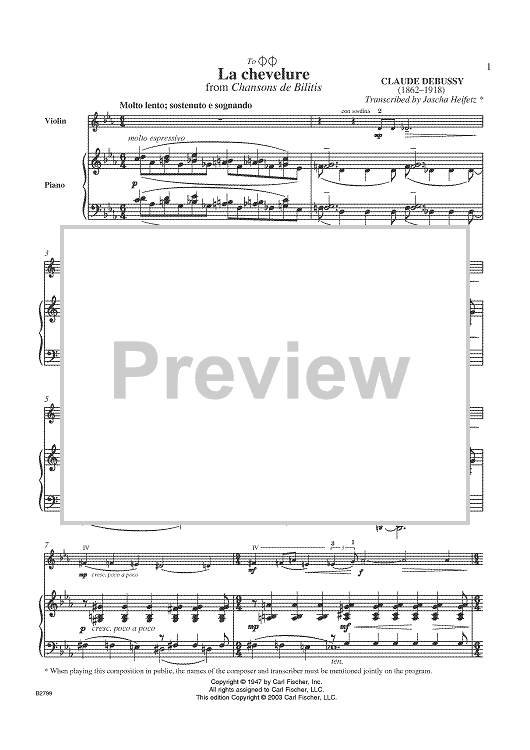"La Chevelure - from Chansons de Bilitis" Sheet Music by Claude Debussy