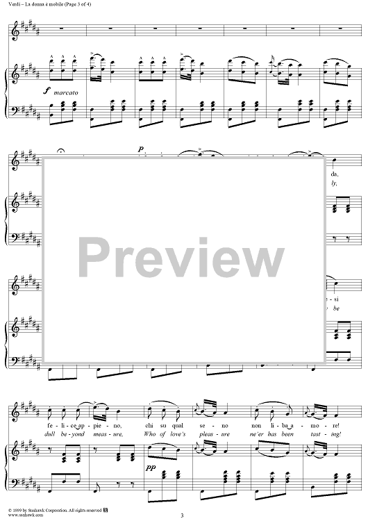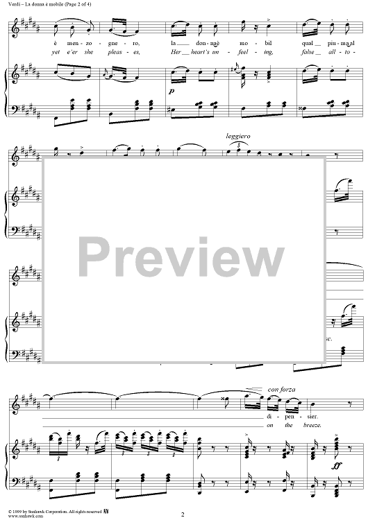 Digital Sheet Music for La Donna è Mobile by Giuseppe Verdi scored for Voice/Piano; id:118330