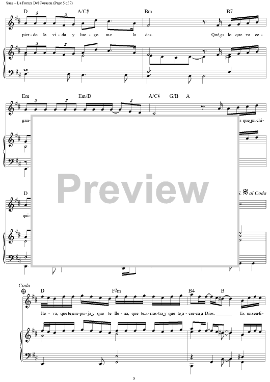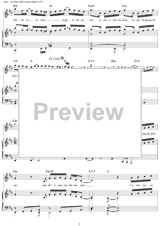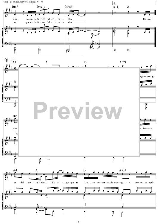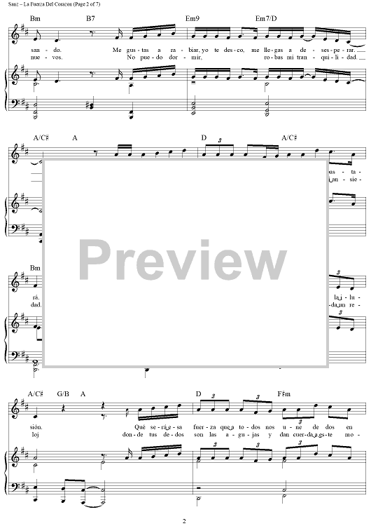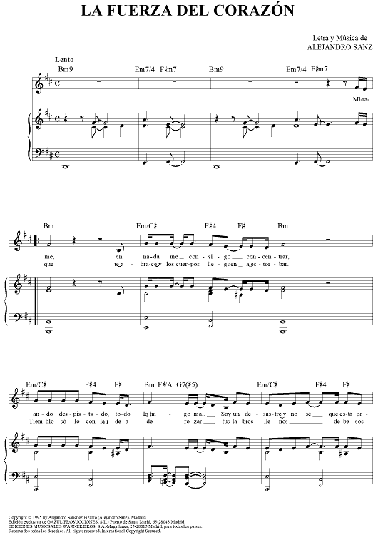 "La Fuerza Del Corazón" Sheet Music by Alejandro Sanz