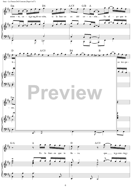 Digital Sheet Music for La Fuerza Del Corazón by Alejandro Sanz scored for Piano/Vocal/Chords; id:441524