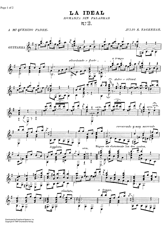 Digital Sheet Music for La Ideal by Julio Sagreras scored for Guitar; id:327152