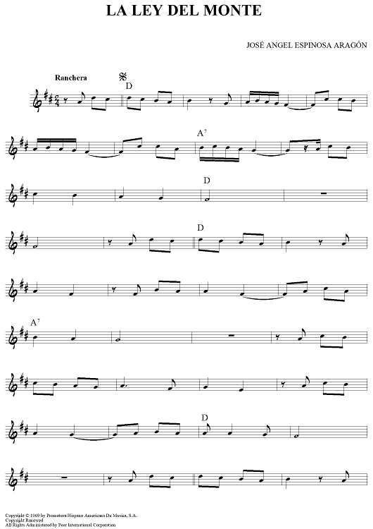 "La Ley Del Monte" Sheet Music by Jose Angel Espinosa Aragon