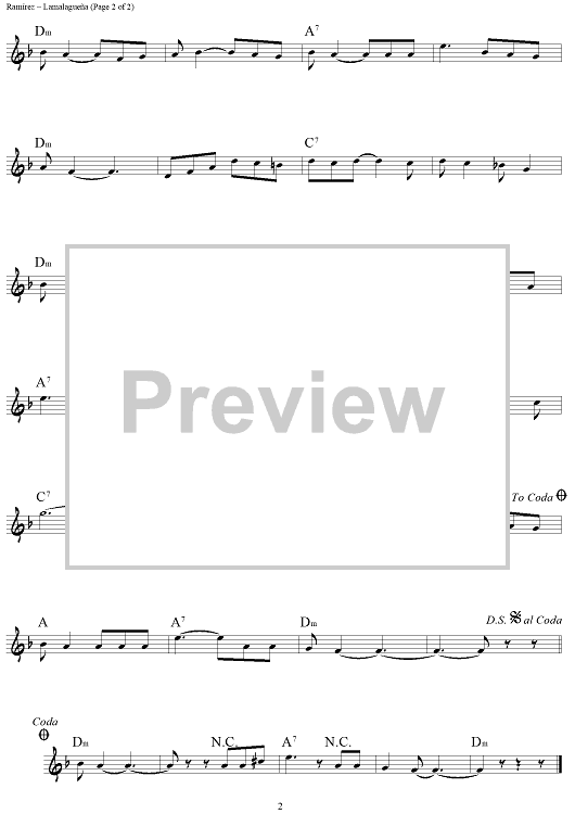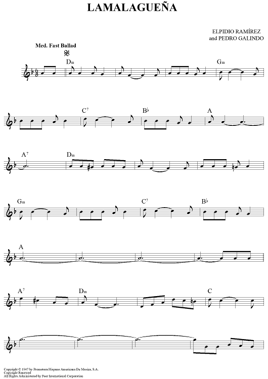 Digital Sheet Music for La Malagueña by Elpidio Ramirez, Pedro Galindo scored for Lead Sheet; id:449240