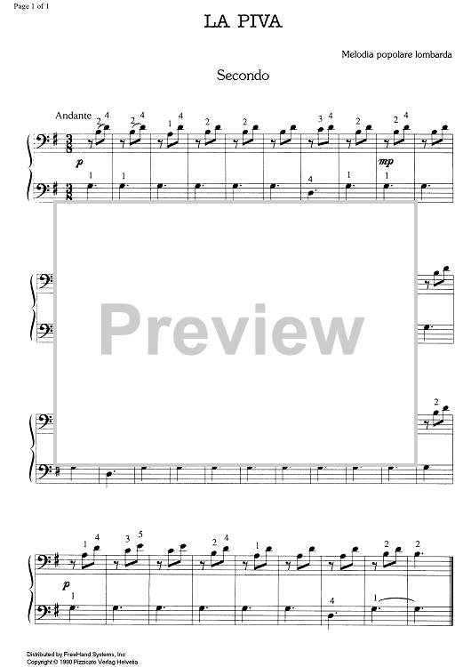 Digital Sheet Music for La Piva by Enrico Battistoni, S. Alfonso de' Liguori scored for 1 Piano, 4 Hands; id:354452