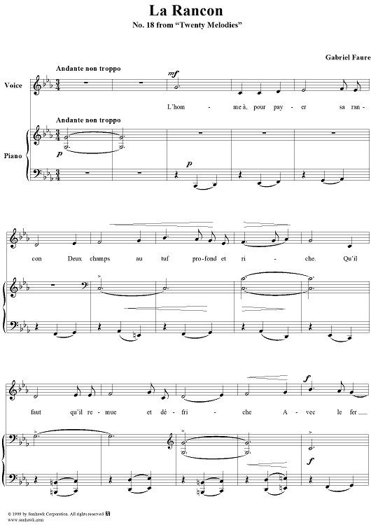 Digital Sheet Music for La rançon - Op. 8, No. 2 by Gabriel Fauré, Charles Baudelaire scored for Voice/Piano; id:270142