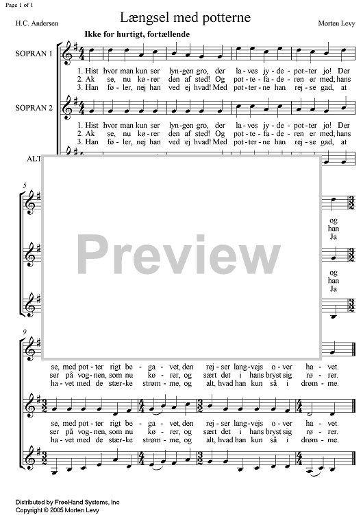 Digital Sheet Music for Laengsel med potterne by Morten Levy scored for SATB Choir; id:354223