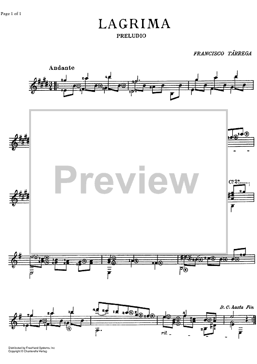 "Lagrima" Sheet Music by F. Tarrega