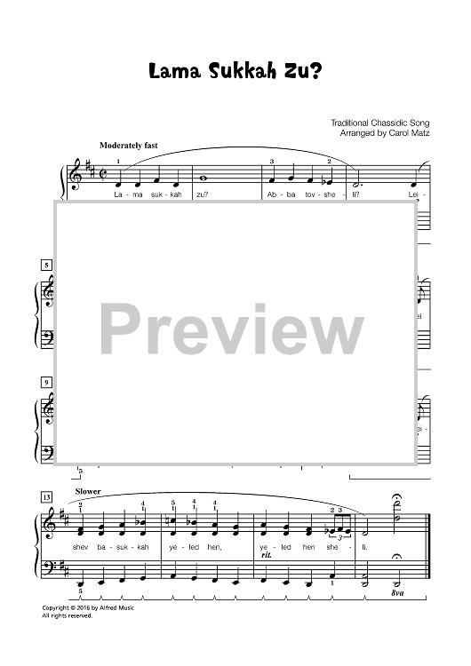 Digital Sheet Music for Lama Sukkah Zu? by Carol Matz, Traditional Folk Song scored for Piano; id:461800