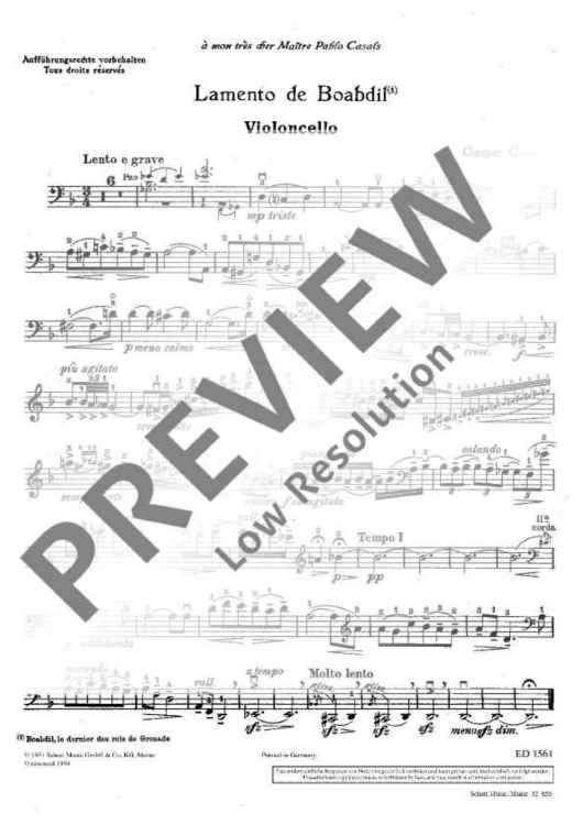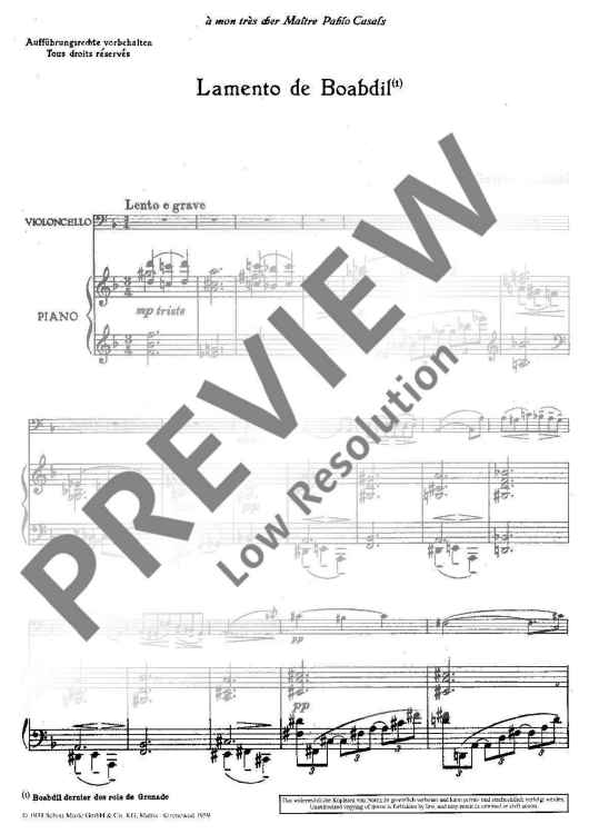 Digital Sheet Music for Lamento de Boabdil by Gaspar Cassadò scored for Cello And Piano; id:472419