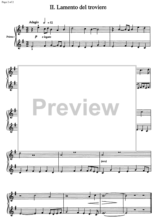 Digital Sheet Music for Lamento del troviere by Leonello Capodaglio scored for 1 Piano, 4 Hands; id:330408