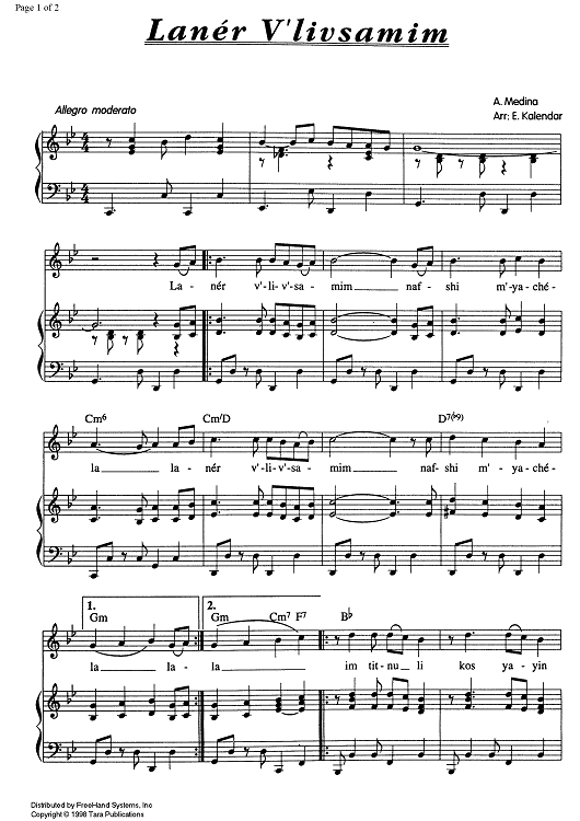 "Lanér V'livsamim" Sheet Music by A. Medina