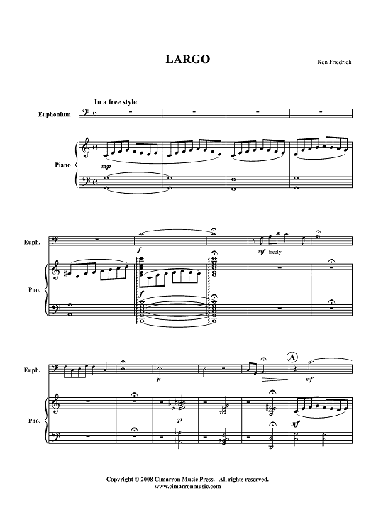 Digital Sheet Music for Largo - Piano Score by Ken Friedrich scored for Euphonium/Piano; id:426372