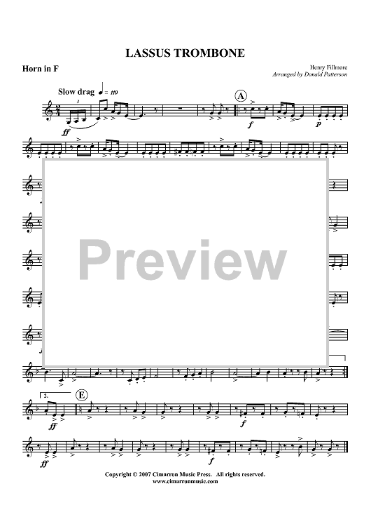 Digital Sheet Music for Lassus Trombone - Horn in F by Henry Fillmore, Don Patterson scored for Brass Quintet; id:417030